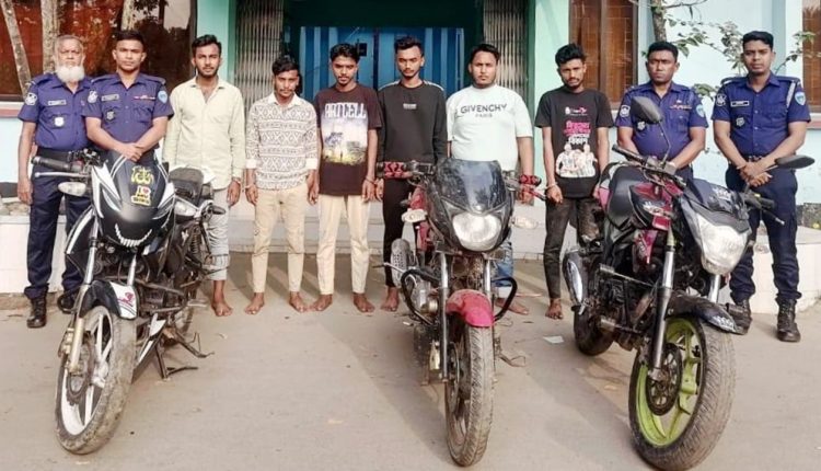 গ্রেপ্তাররা হলেন- নোয়াখালীর বেগমগঞ্জ উপজেলার অনন্তপুর গ্রামের আব্দুল বারেক মুন্সী বাড়ির মো.আব্দুল করিমের ছেলে মো. জাকির হোসেন ওরফে রাকিব (২৪), একই বাড়ির দ্বীন ইসলামের ছেলে মো. জাহিদুল ইসলাম ফারহান (১৯), একলামপুরের কাশেম কনট্রাক্টর বাড়ির আবুল কাশেমের ছেলে কামরুল হাসান ওরফে রাহাদ (২২), সদর উপজেলার ভুলুয়া কলোনির মো. লিটনের ছেলে মো. রিপন (২২), সোনাইমুড়ীর নাটেশ্বর গ্রামের ভূঁইয়া হাজী বাড়ির সাহেব উল্যার ছেলে শামীমুর রহমান ওরফে শামীম (২২) ও আলীপুরে ঈদের বাপের বাড়ির সুলতান আহমদের ছেলে মো. ফয়সাল ওরফে বুলেট বাবু (২৩)।