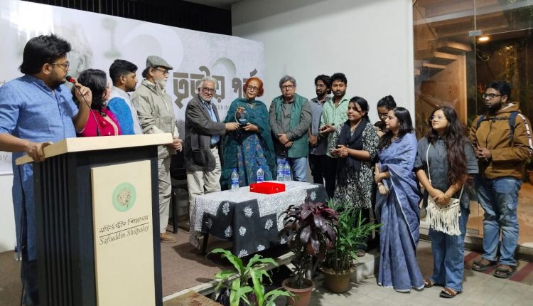 ভাস্কর্যচর্চা ও চিত্রকলায় গুরুত্বপূর্ণ অবদানের স্বীকৃতি হিসেবে বিশেষ সম্মাননা পেলেন বাংলাদেশে আধুনিক ভাস্কর্যের পথিকৃৎ প্রয়াত হামিদুজ্জামান খান।