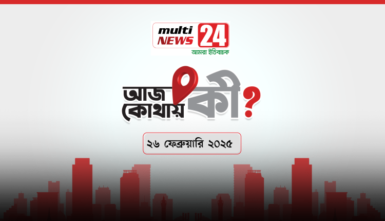ঢাকায় প্রতিদিন নানা কর্মসূচি পালন করে সরকারের বিভিন্ন দপ্তর, সংস্থা এবং অনেক সংগঠন। বুধবার (২৬ ফেব্রুয়ারি) উল্লেখযোগ্য কর্মসূচির মধ্যে কী কী আছে, দিনের শুরুতেই তা জেনে নিতে পারেন।
