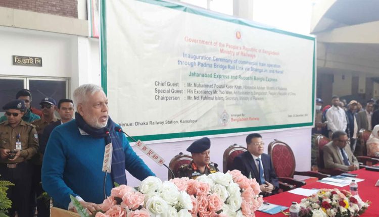 উপদেষ্টা আরও বলেন, আজকের পদ্মা রেলসেতু সংযোগের মাধ্যমে খুলনা এবং ঢাকার মধ্যে একটা দ্রুত যাতায়াতের ব্যবস্থা হয়েছে। পৌনে চার ঘণ্টায় ঢাকা থেকে খুলনায় পৌঁছে যাবে। এই প্রকল্প বাস্তবায়ন করতে গিয়ে রেলের ইঞ্জিনিয়াররা, রেলের সর্বস্তরের কর্মচারীরা রেলের মহাপরিচালকসহ, বিশেষ করে বাংলাদেশ সেনাবাহিনীর কর্মকর্তারা উল্লেখযোগ্য ভূমিকা রেখেছেন। রেলের আজকের যে বর্তমান অবস্থা, এই অবস্থাতে আসার একটি কারণ হচ্ছে অপব্যয়। যত্রতত্র রেল স্টেশন বানানো হয়েছে, লাইন বিস্তার করা হয়েছে। কিন্তু ইঞ্জিন, কোচ, জনবল আছে কিনা সেগুলো না দেখে, এসব করা হয়েছে।
