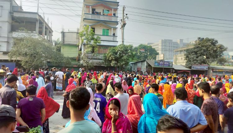 ঈদের ছুটি ও বেতনের দাবিতে সাভারে শ্রমিক বিক্ষোভ