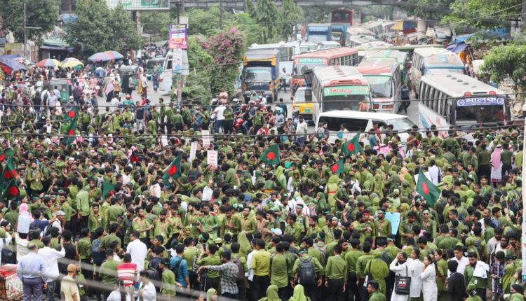 এক দফা দাবিতে নার্সিং কলেজ শিক্ষার্থীদের শাহবাগ অবরোধ