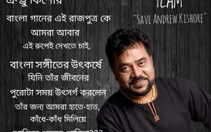রন্টি দাস (সংগীঙ্গীতশিল্পী): দাদার সাথে আজও কথা হলো,, দাদার গলার আওয়াজ শুনে চিৎকার করে কান্না চলে এসেছিলো, তখন দাদা বলছিল আরে বাবু কান্দিস না,,আমার টাকা লাগবেনা,,শুধু আমার জন্য pray করতে বল সবাইকে,,,আসলেই আমরা কেউ কিছু করতে পারবোনা, একমাত্র আল্লাহ ছাড়া, যাই হোক আমার কাছে একটা একাউন্ট নাম্বার আছে,বউদি দিয়েছে,বলেছে,ফেইসবুক আর জন্সম্মুখে না দিতে,,কেউ যদি চান,,আমরা ভাই বোন রা কয়েকজন টাকা collect করছি,যদি কেউ চান আমাদের সাথে যোগাযোগ করতে পারেন,,,,,pls,,শুধু টাকা নয় যেকোনো মনের কথা ও আমাদের বলতে পারেন,যেটা আমি বা আমরা দাদা পযন্ত পৌছে দেবো,,,এতে করে আপনারা আমরা দাদার জন্য ভাবছি তাতেই তিনি অনেক খানি সুস্থ হয়ে উঠবেন,,,we love u dada..,,,এই link ঢুকে ও আপনারা donate করতে পারেন,,,,.https://www.gofundme.com/f/andrew-kishore