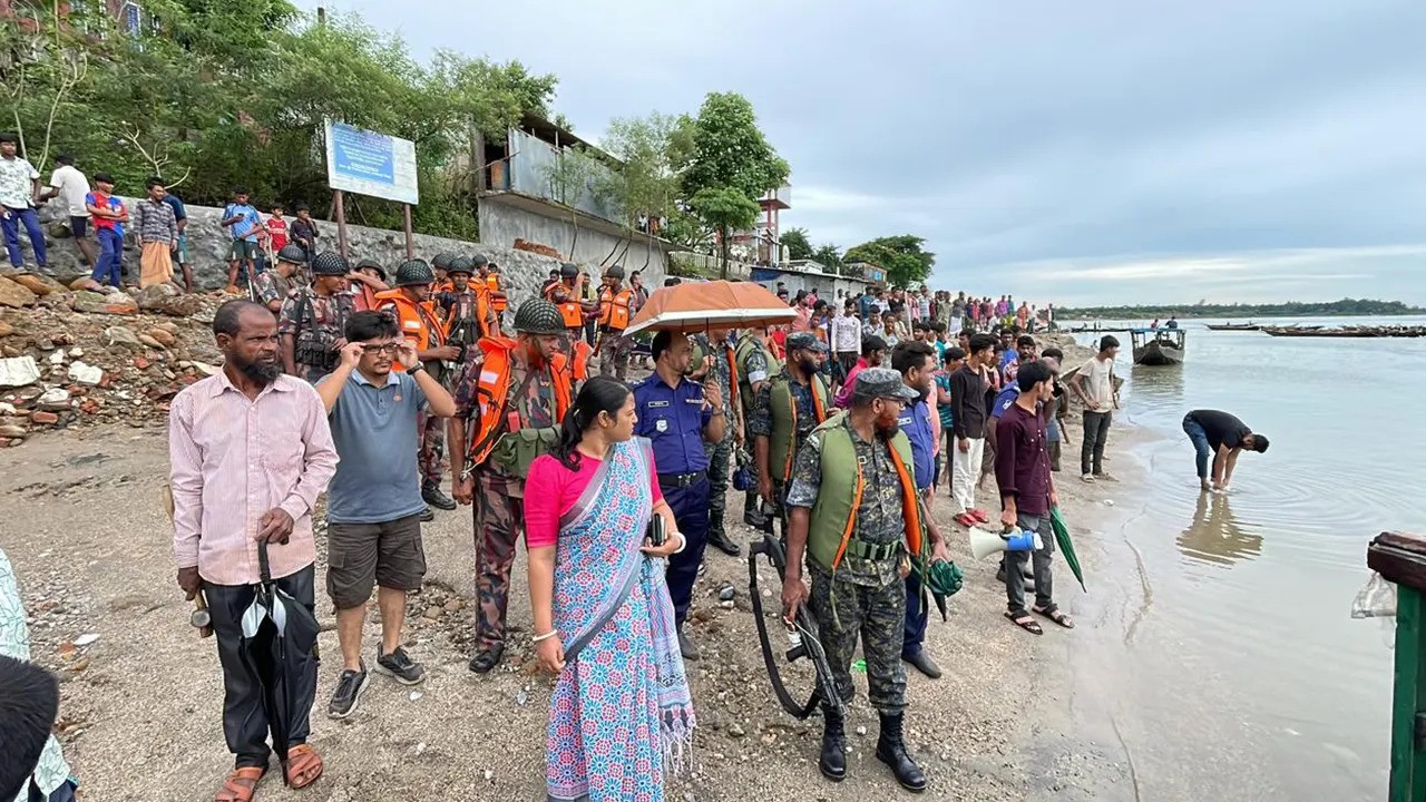 আভিযানিক দলকে, নদীর তীরে ভিরিয়ে রাখা বিভিন্ন নৌকা হ্যামার দিয়ে পিটিয়ে ভেঙে ফেলতে দেখা যায়। এসময় নদীর পাড়জুড়ে অসংখ্য নৌকার মাঝিরা ভিড় করেন।