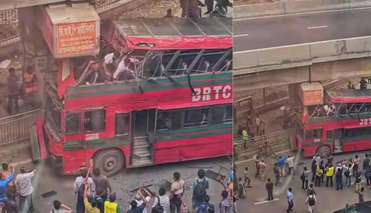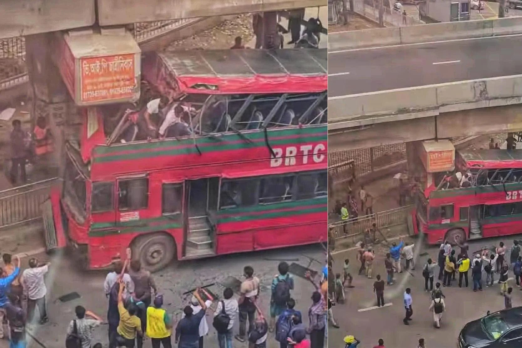 এলিভেটেড এক্সপ্রেসওয়ের পিলারে বিআরটিসি’র দোতলা বাসের ধাক্কা