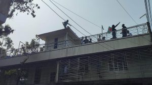 দেখা যায়, আন্দোলনকারীরা কেউ বাড়ির ছাদে, কেউ বাড়ির ভেতরে, আবার কেউ বাড়ির সামনে অবস্থান করছেন। তারা ‘নারায়ে তাকবির, কাউয়া কাউয়া’ সহ বিভিন্ন স্লোগান দিচ্ছে। এ সময় তারা বাড়ির বিভিন্ন আসবাবপত্র, ছাদের রেলিংয়ে ও সামনে থাকা পোড়া একটা গাড়িতে আগুন দেন।