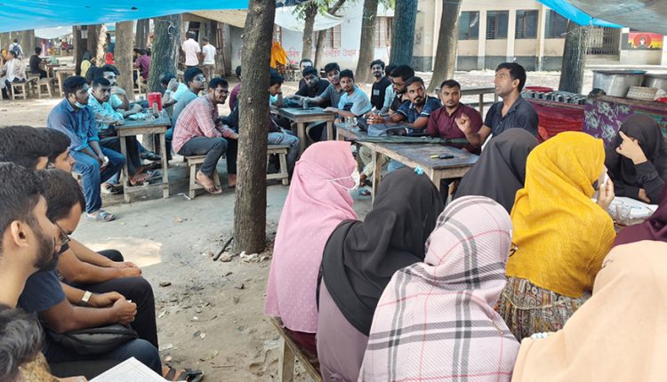 এমন পরিস্থিতিতে শনিবার রাত পৌনে ১০টার দিকে উপ-উপাচার্যসহ অন্য শিক্ষকদের ‘লাঞ্ছিত’ করার সঙ্গে জড়িত ব্যক্তিদের দৃষ্টান্তমূলক শাস্তির দাবিতে রোববার কর্মবিরতির ডাক দেন বিশ্ববিদ্যালয়ের জাতীয়তাবাদী শিক্ষক ফোরামের সভাপতি আব্দুল আলিম। তারই প্রেক্ষিতে আজ শহীদ বুদ্ধিজীবী স্মৃতি ফলকের সামনের লিচুতলায় অবস্থান নিয়েছেন কর্মকর্তা-কর্মচারীরা।