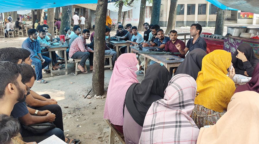 কর্মবিরতি উপেক্ষা করে গাছতলায় ক্লাস নিলেন রাবি শিক্ষক