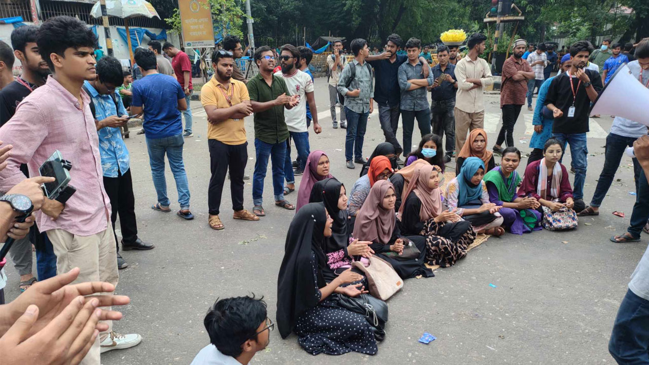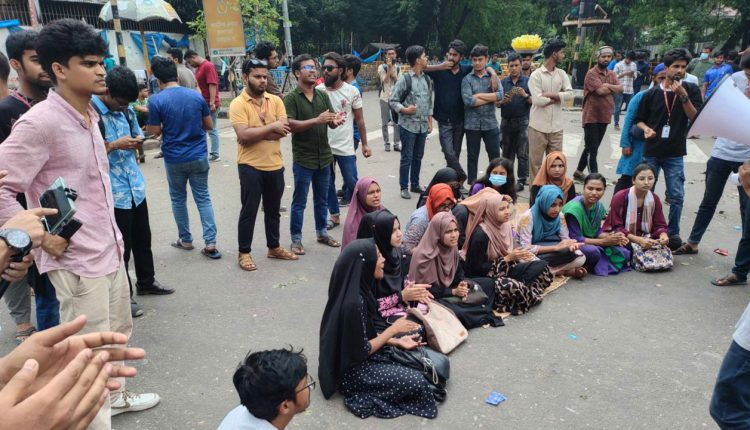 কাকরাইলে এখনও বন্ধ যান চলাচল, সড়কে জবি শিক্ষার্থীরা
