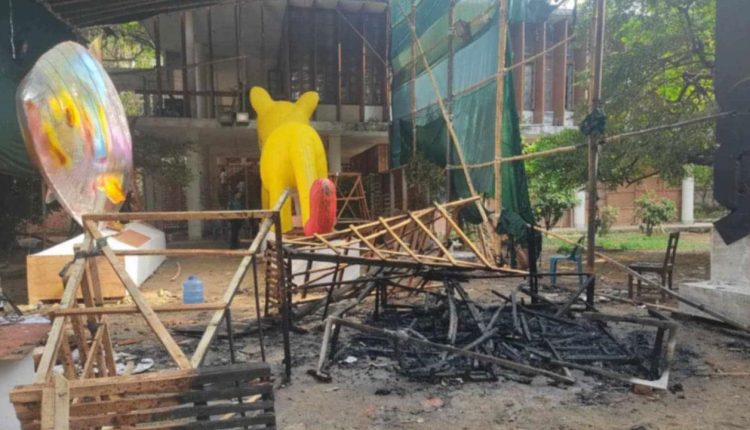 চারুকলার এক শিক্ষার্থী বলেন, এটি নির্মাণ কাজ প্রায় শেষ হয়েছিল। আজকের মধ্যে এটির কাজ শেষ হয়ে যেত। এটা নিঃসন্দেহে ষড়যন্ত্র। আমি নিশ্চিতভাবে বলতে পারি কেউ ইচ্ছা করেই আগুন লাগিয়েছে। প্রশাসনের লোকজনও এর পেছনে জড়িত কি না খুঁজে বের করতে হবে। কারণ রাতে এখানে পুলিশের লোকজনও উপস্থিত ছিল।