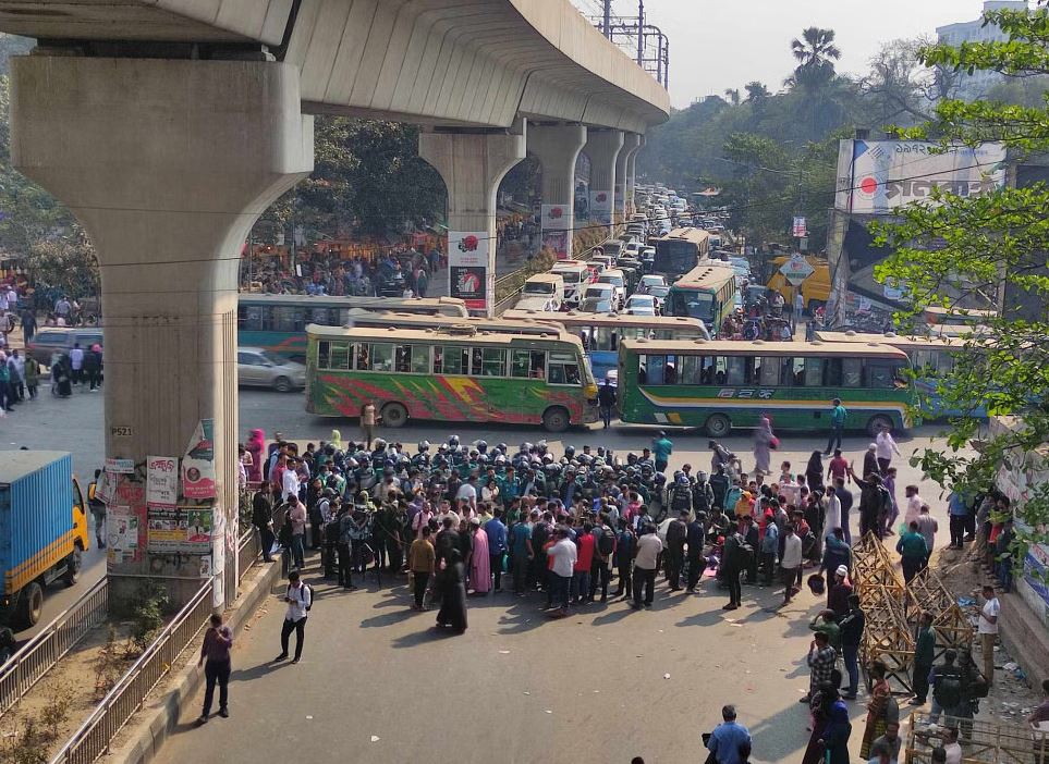শাহবাগ থানার ওসি খালেদ মনসুর বলেন, বেশ কিছু দাবি নিয়ে তারা বিএসএমএমইউর সামনে সড়কে অবস্থান করছে। তবে মোড়ের অন্য লেনগুলো দিয়ে যান চলাচল করছে।