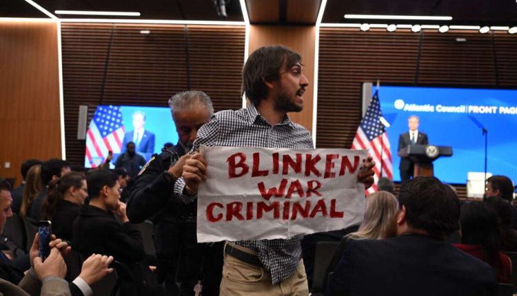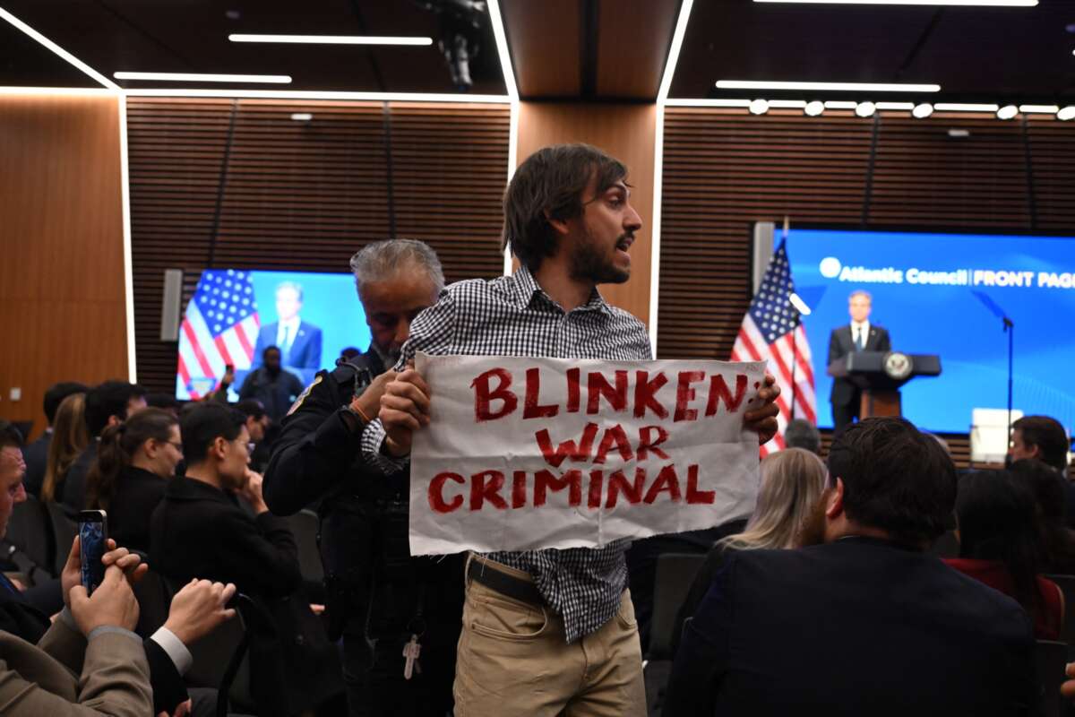 বাইডেন প্রশাসনের বিরুদ্ধে ইসরায়েলি যুদ্ধাপরাধে জড়িত থাকার অভিযোগ এনে বিক্ষোভকারীরা তিনবার ব্লিঙ্কেনের বক্তব্যে বাধা দেয়। একজন বিক্ষোভকারী ব্লিনকেনকে ‘যুদ্ধ দানব’ আখ্যা দেন।