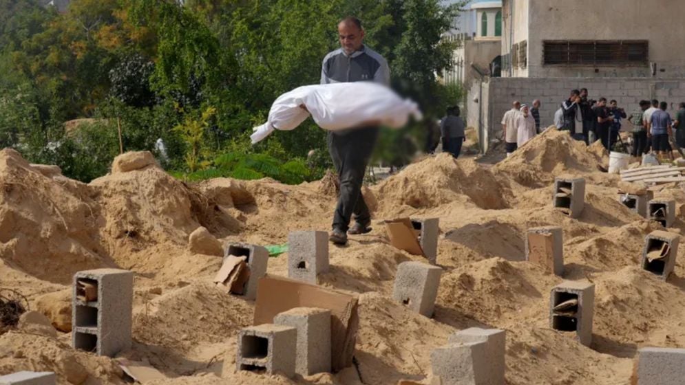 গাজা বেশ কয়েকটি গণকবরে তাদের প্রিয়জনদের খুঁজে পাওয়ার চেষ্টা করছেন ফিলিস্তিনিরা। নিহতদের পরিচয় শনাক্ত করা দারুণ কঠিন হয়ে পড়েছে। কারণ বহু মৃতদেহ অজ্ঞাত এবং পরিচিতি চিহ্নও ক্ষয়প্রাপ্ত।