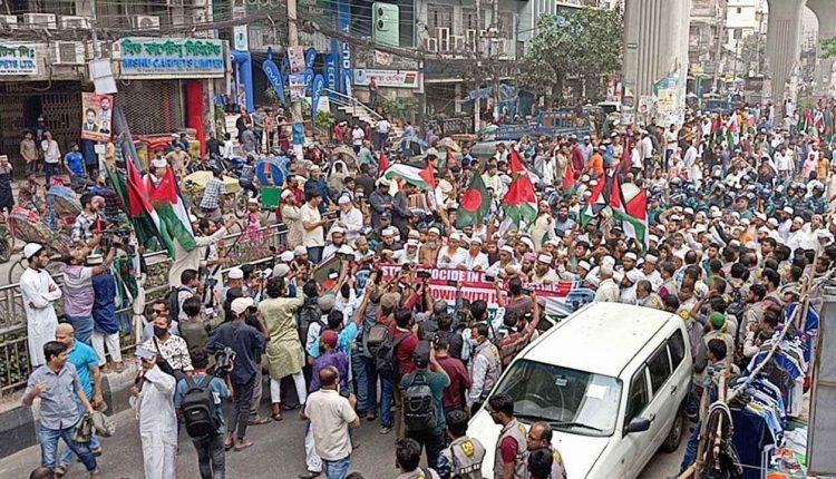 গাজায় ইসরায়েলি বর্বরতার বিরুদ্ধে ঢাকায় বিক্ষোভ
