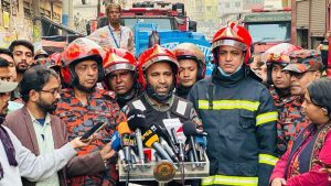 ফায়ার সার্ভিসের পরিচালক সাংবাদিকদের সঙ্গে কথা বলেন। ছবি: সংগৃহীত