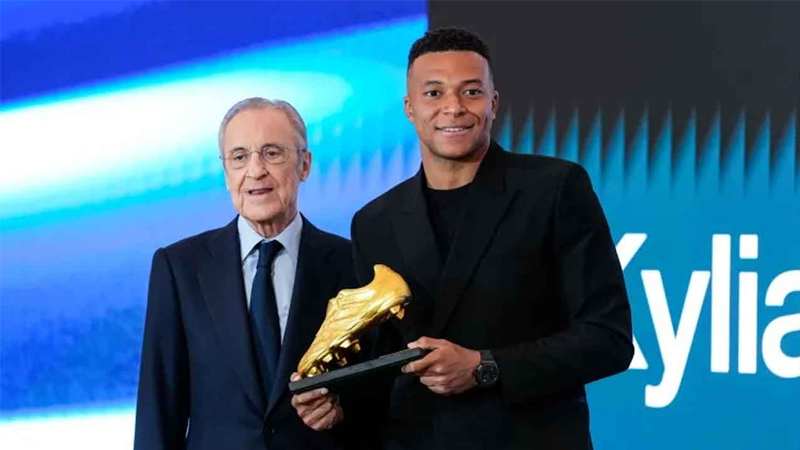 ইউরোপিয়ান গোল্ডেন বুটের পুরস্কার হাতে পেলেন রিয়াল মাদ্রিদের ফরাসি তারকা কিলিয়ান এমবাপ্পে। সবশেষ মৌসুমে লা লিগায় ৩১ গোল করেন তিনি।
