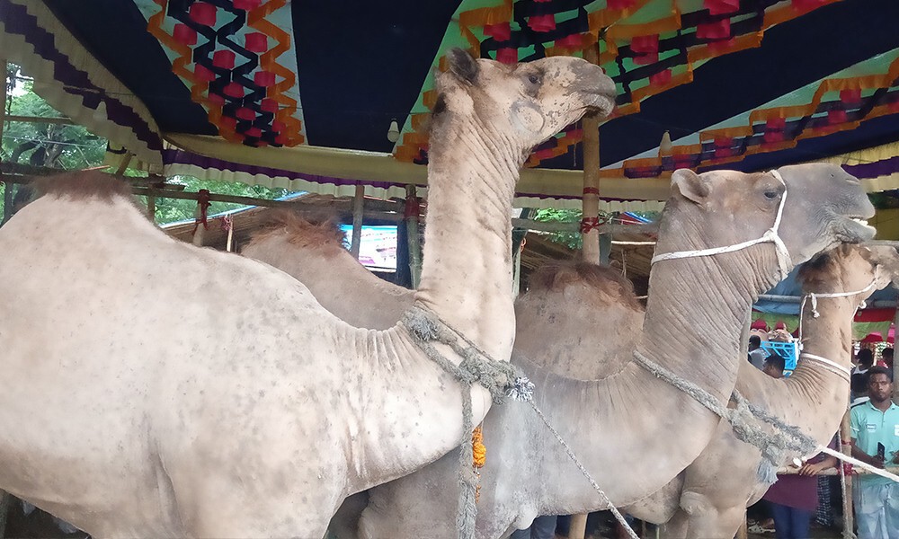 মইজ্জারটেক হাটে উট, দাম হাঁকা হচ্ছে ৩০-৩৫ লাখ