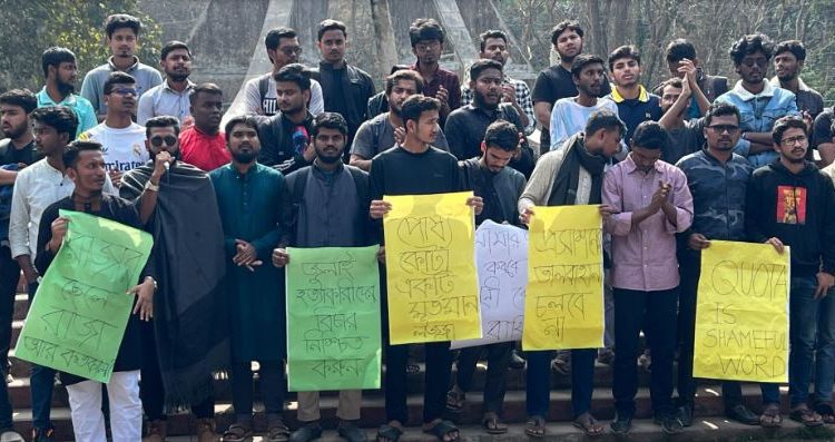মঙ্গলবার (৭ জানুয়ারি) সকাল সাড়ে ১১টা থেকে বিশ্ববিদ্যালয়ের শহীদ মিনার প্রাঙ্গণে পোষ্য কোটা বাতিল ও জুলাই আন্দোলনে হত্যাকাণ্ডে জড়িতদের বিচারের দাবিতে বিক্ষোভ কর্মসূচি পালনকালে এ ঘোষণা দেন তারা।