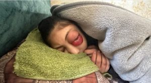 মুখ থেকে কম্বল সরালেই হানা একটু ফাক করে কাঁদে। কত যন্ত্রণা নিয়ে বেঁচে আছে সে। ছবি: সংগৃহীত
