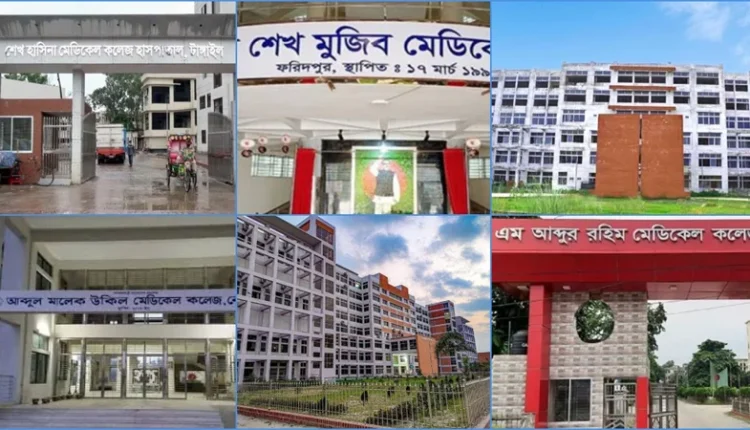 যে ৬টি কলেজের নাম পরিবর্তন করা হয়েছে সেগুলো হলো— শেখ হাসিনা মেডিকেল কলেজ, নোয়াখালী; শেখ হাসিনা মেডিকেল কলেজ, টাঙ্গাইল; বঙ্গবন্ধু শেখ মুজিব মেডিকেল কলেজ, ফরিদপুর; কর্ণেল মালেক মেডিকেল কলেজ, মানিকগঞ্জ; আব্দুল মালেক উকিল মেডিকেল কলেজ নোয়াখালী; এম. আব্দুর রহিম মেডিকেল কলেজ, দিনাজপুর।