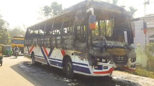 জামালপুরে দুর্ঘটনায় নিহতের জেরে বাসে আগুন