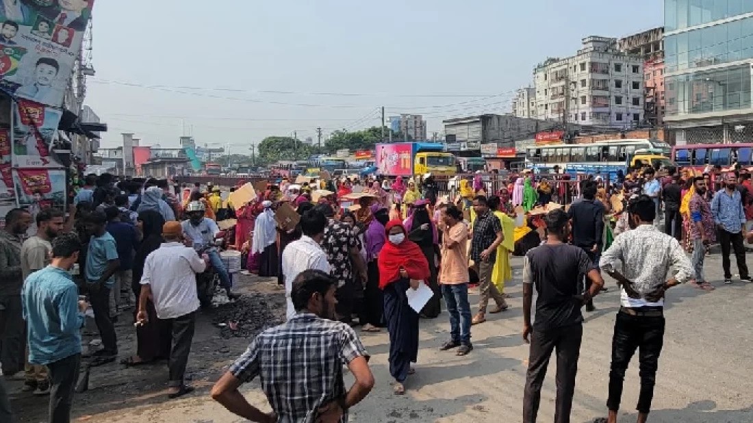 টঙ্গীতে বকেয়া বেতনের দাবিতে মহাসড়ক অবরোধ