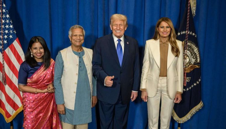 প্রেস উইংয়ের পাঠানো এক বার্তায় বলা হয়, ২৩ সেপ্টেম্বর নিউইয়র্কে মার্কিন প্রেসিডেন্ট আয়োজিত এক সংবর্ধনা অনুষ্ঠানে বাংলাদেশের প্রধান উপদেষ্টা অধ্যাপক মুহাম্মদ ইউনূস এবং তার মেয়ে দীনা ইউনূসের সঙ্গে ছবি তোলেন মার্কিন প্রেসিডেন্ট ডোনাল্ড ট্রাম্প এবং ফার্স্ট লেডি মেলানিয়া ট্রাম্প।