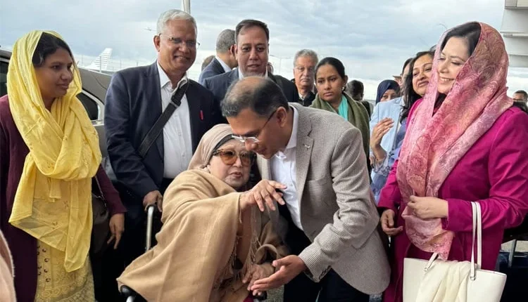 এর আগে, লন্ডনের হিথ্রো বিমানবন্দরে খালেদা জিয়াকে হাসিমুখে বিদায় জানানো হয়। তাকে বিদায় জানাতে গিয়েছিলেন ছেলে তারেক রহমান ও বড় নাতনি জাইমা রহমান। এসময় খালেদা জিয়ার দুই পুত্রবধূ জুবাইদা রহমান ও সৈয়দা শর্মিলা রহমান এবং সফর সঙ্গীরাও সঙ্গে উপস্থিত ছিলেন।