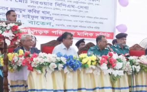 বাস সার্ভিস উদ্বোধন অনুষ্ঠানে ছিলেন ডিএমপি কমিশনার শেখ মো. সাজ্জাত আলী ও ঢাকা সড়ক পরিবহন মালিক সমিতির সাধারণ সম্পাদক সাইফুল আলম। ছবি: সংগৃহীত