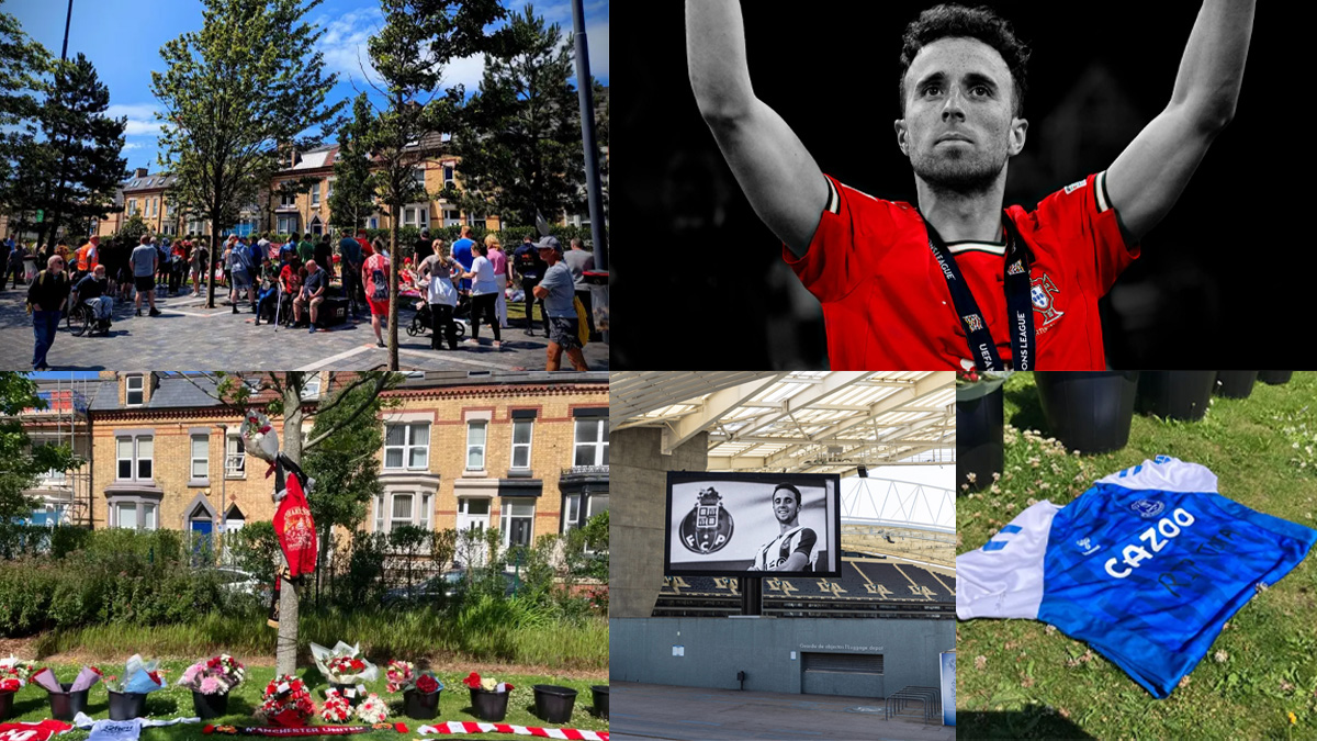 লিভারপুলের অ্যানফিল্ড ও তার সাবেক ক্লাব উলভারহ্যাম্পটনের মোলিন্যু স্টেডিয়ামের সামনে ফুল, ব্যানার ও কাগজে লেখা বার্তায় ভক্তরা জানাচ্ছেন তাদের শ্রদ্ধা ও ভালোবাসা। একটি বার্তায় লেখা ছিল, ‘সব কিছুর জন্য ধন্যবাদ, দিয়োগো। তুমি চিরকাল আমাদের হৃদয়ে থাকবে।’