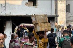 দেওয়ালের ইট খুলে হাতে নিয়ে যাচ্ছিলেন সৈয়দ রিফাত নামের এক ব্যক্তি। এ সময় তিনি বলেন, ‘ফ্যাসিবাদের ধ্বংসস্তূপের প্রমাণ রেখে দেওয়ার জন্য এই ইট রাখলাম। এরপরও যদি আওয়ামী লীগ, ছাত্রলীগের কেউ ফিরে আসার কথা বলে, এই ইট তার কপালে যাবে।’