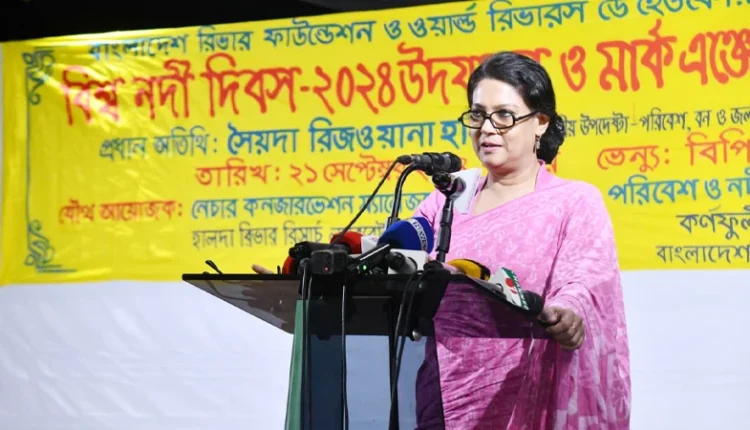 শনিবার রাজধানীর বাংলাদেশ পর্যটন করপোরেশন মিলনায়তনে এক অনুষ্ঠানে প্রধান অতিথির বক্তব্যে এসব কথা বলেন তিনি। বিশ্ব নদী দিবস-২০২৪ ও রিভার অ্যাওয়ার্ড-২০২৪ প্রদান উপলক্ষে এ অনুষ্ঠানের আয়োজন করা হয়।