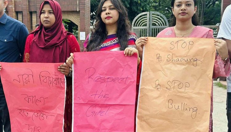 নারী শিক্ষার্থীদের সাইবার বুলিংয়ের প্রতিবাদে জাবি ছাত্রদলের মানববন্ধন