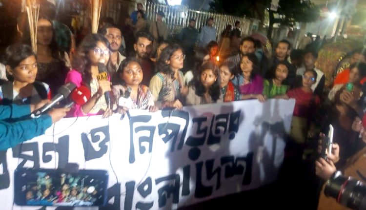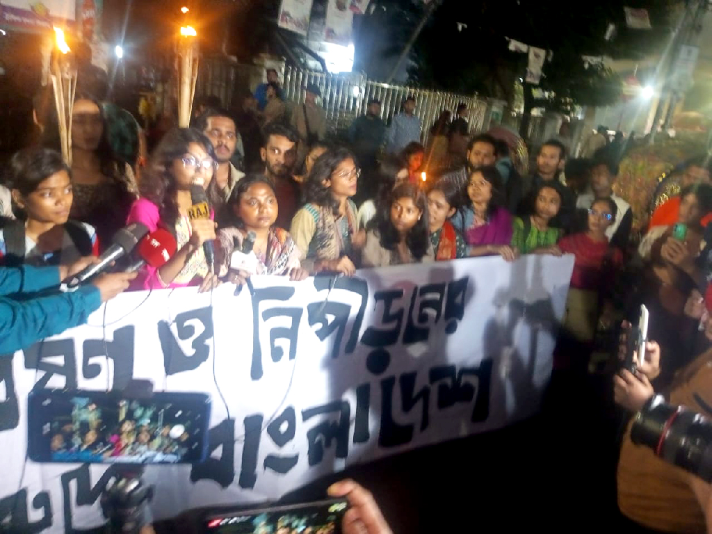 মঙ্গলবার (২৫ ফেব্রুয়ারি) সন্ধ্যা সোয়া ৭টার দিকে ‘ধর্ষণ ও নিপীড়নের বিরুদ্ধে বাংলাদেশ’ ব্যানারে বিশ্ববিদ্যালয়ের টিএসসি এলাকা থেকে এ মিছিল শুরু হয়। মিছিলটি বিশ্ববিদ্যালয়ের ভিসি চত্বর, হলপাড়া, শাহবাগ হয়ে মিলন চত্বরে এসে থামে। মিলন চত্বরে এসে শিক্ষার্থীরা একটি সংক্ষিপ্ত সমাবেশ করেন।