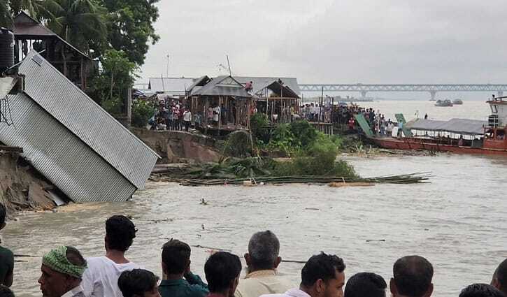 গত সোমবার (৭ জুলাই) বিকেলে নতুন করে ভাঙন দেখা দেয়। মাত্র দুই ঘণ্টার ভাঙনে নদীগর্ভে বিলীন হয় ১৬টি বাড়ি ও ১০টি ব্যবসা প্রতিষ্ঠান। ভাঙনের আশঙ্কায় সরিয়ে নেওয়া হয় ১৫টি দোকান।