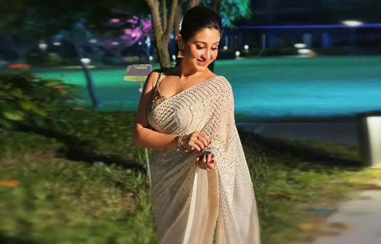 ঐন্দ্রিলার পূজার লুকের মূল আকর্ষণ ছিল একটি সিলভার জরিপাড়ের শাড়ি। শাড়ির স্নিগ্ধ আভা আর ঝকঝকে জরির কাজ তাকে দিয়েছে রাজকীয় আবেদন। পূজার উজ্জ্বল পরিবেশে এই রঙ যেন আরো দীপ্তিময় হয়ে উঠেছে। এই সাজে তিনি হয়ে উঠেছেন একেবারেই অনন্যা, যেখানে ঐতিহ্যের ছোঁয়া আর আধুনিকতার স্টাইল একসঙ্গে ধরা দিয়েছে।