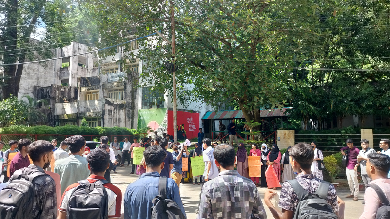 রোববার (৭ সেপ্টেম্বর) দুপুর ১টার দিকে বিশ্ববিদ্যালয়ের প্রশাসনিক ভবনের সামনে এই ত্রিমুখী বিক্ষোভ সমাবেশ অনুষ্ঠিত হয়। বিক্ষোভে অংশ নেয়া শিক্ষার্থী ও নেতাকর্মীরা বিভিন্ন স্লোগান দেন।