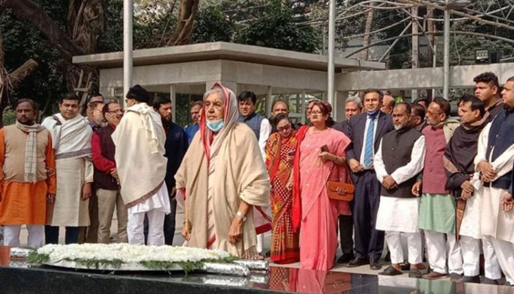 বঙ্গবন্ধুর প্রতিকৃতিতে সংসদ উপনেতার শ্রদ্ধা