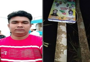 শ্রমিকদল নেতা সুমন (পাশের পোস্টারে তার ছবি ও পদবি)। ছবি: সংগৃহীত