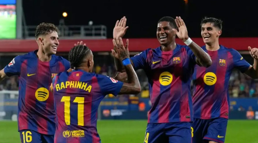 লা লিগায় নিজেদের ছন্দে ফেরার রাতটা স্প্যানিশ জায়ান্ট বার্সেলোনা বানাল উৎসবমুখর। রোববার রাতে ৬ হাজার দর্শক ধারণক্ষমতার এস্তাদি জোহান ক্রুইফে হ্যান্সি ফ্লিকের দল ভ্যালেন্সিয়াকে উড়িয়ে দিল ৬-০ গোলে। দুটি করে গোল করলেন ফেরমিন লোপেজ, রাফিনিয়া আর অভিজ্ঞ রবার্ট লেভানডভস্কি।