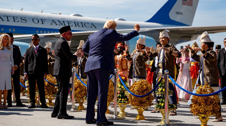 ট্রাম্পকে বহনকারী এয়ারফোর্স ওয়ান বিমান কুয়ালালামপুর আন্তর্জাতিক বিমানবন্দরে অবতরণের পরই মালয়েশিয়ার প্রধানমন্ত্রী আনোয়ার ইব্রাহিম তাকে উষ্ণ অভ্যর্থনা জানান। এসময় পাশেই মালয়েশিয়ার ঐতিহ্যবাহী নৃত্যশিল্পীরা ট্রাম্পকে অভ্যর্থনা জানিয়ে নাচছিলেন। যা দেখে ট্রাম্পও স্বতঃস্ফূর্তভাবে নাচে অংশ নেন। সেখানে পারফর্মারদের ছন্দে হাসিমুখে ট্রাম্পকে মুষ্টিবদ্ধ হাতে শরীর দুলিয়ে নাচতে দেখা যায়।