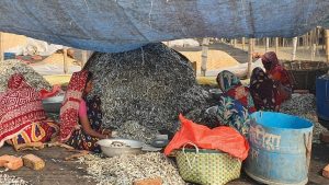 শুটকি উৎপাদেনে ব্যস্ত নারী