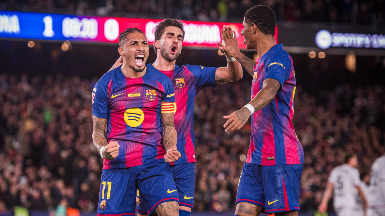 এল ক্লাসিকোয় রিয়াল মাদ্রিদের কাছে হারই যেন তাতিয়ে দিয়েছে চিরপ্রতিদ্বন্দ্বী বার্সেলোনাকে। এরপর থেকে লা লিগায় তারা টানা সপ্তম ম্যাচে জিতল। ওসাসুনার বিপক্ষে তারা এবার রীতিমতো একপেশে দাপট দেখিয়েছে। কাতালানদের হয়ে জোড়া গোল করেছেন ব্রাজিলিয়ান ফরোয়ার্ড রাফায়েল রাফিনিয়া। স্প্যানিশ তারকা লামিনে ইয়ামাল গোল না পেলেও ম্যাচজুড়ে আক্রমণে নেতৃত্ব দিয়েছেন।