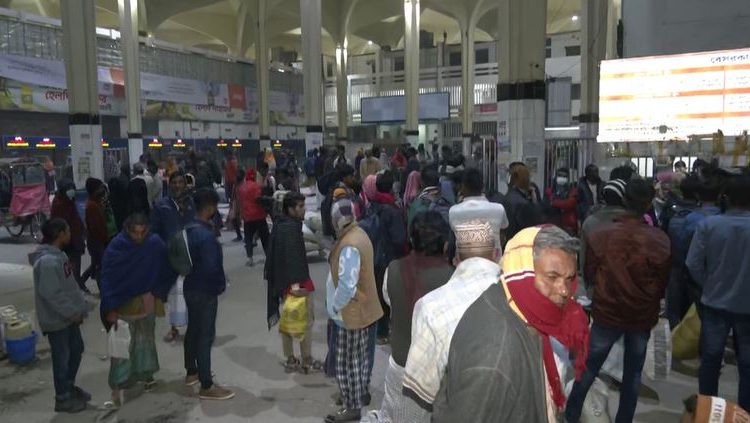 বিলকিস আরা বেগম নামে এক নারী বলেন, ‘আমার সঙ্গে ২টা বাচ্চা রয়েছে। এখন শুনছি ট্রেন চলবে না। শিশুদের নিয়ে কীভাবে যাবো, চিন্তায় পড়ে গেলাম।’