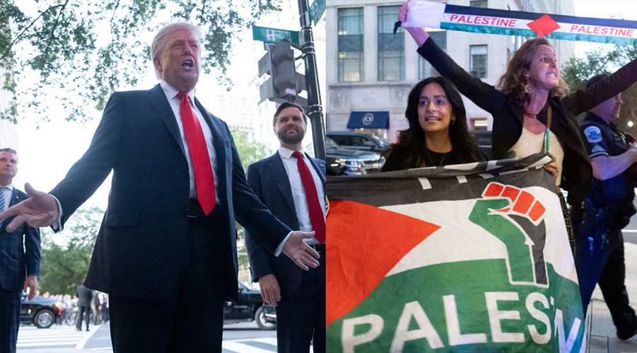 তবে একইসঙ্গে দেখা যায় বিপরীত চিত্রও। গাজায় ইসরায়েলের গণহত্যামূলক আগ্রাসনের প্রতি যুক্তরাষ্ট্রের অন্ধ সমর্থন দেখানোর নীতির প্রতিবাদে সেখানে উপস্থিত একদল বিক্ষোভকারী দুয়ো ধ্বনি দেন। তারা ফিলিস্তিনের পতাকা উঁচিয়ে বলতে থাকেন, ‘ডিসিকে মুক্ত কর! ফিলিস্তিনকে মুক্ত কর! ট্রাম্প হচ্ছেন একালের হিটলার।’