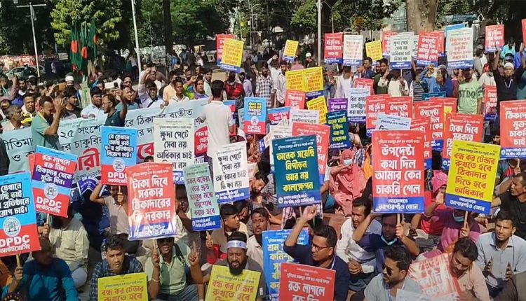 শহীদ মিনারে আউটসোর্সিং কর্মচারীদের সমাবেশ