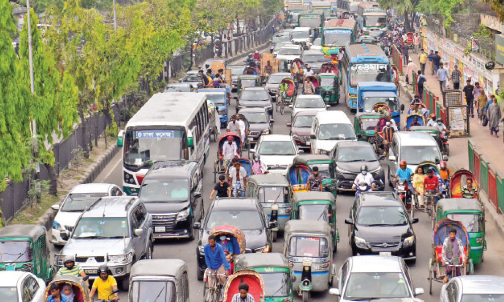 মিডলাইন বাসের সহকারী রইস আহমেদ বলেন, ‘প্রায় ৪০ মিনিট ধরে হাইকোর্টের মোড়ে একই জায়গায় বসে আছি। কোনো গাড়ি সামনে এগোচ্ছে না। সব গাড়ি এক জায়গায় থেমে গেছে।’
