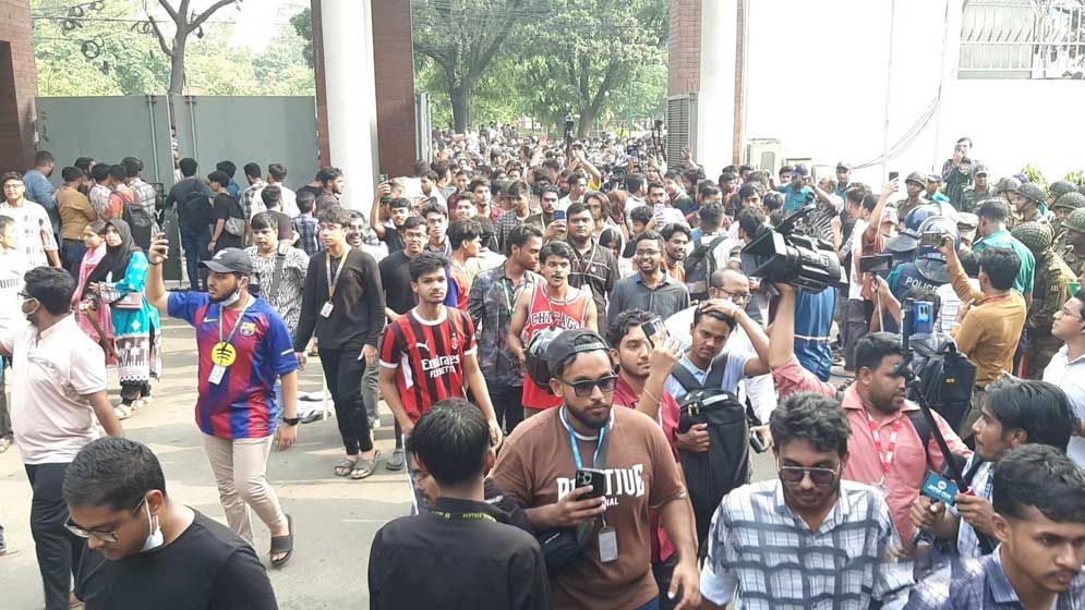 রাজধানীর মাইলস্টোন স্কুল অ্যান্ড কলেজে বিমান বিধ্বস্তের ঘটনাকে ঘিরে শিক্ষার্থীরা শিক্ষা উপদেষ্টা ও শিক্ষাসচিবের পদত্যাগ দাবি করেন। এজন্য তারা আজ এক ঘণ্টা সময়ও বেঁধে দিয়েছিলেন। তা শেষ হওয়ার পরই সচিবালয়ে ঢুকে পড়েন আন্দোলনরত শিক্ষার্থীরা।