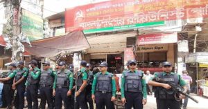ঢাকার পুরানা পল্টনের মুক্তি ভবনে বাংলাদেশের কমিউনিস্ট পার্টির (সিপিবি) কেন্দ্রীয় কার্যালয়ে শনিবার (১৫ মার্চ) সকাল থেকে পুলিশ ও সেনাবাহিনীর অবস্থান দেখা গেছে। গোয়েন্দা তথ্যের ভিত্তিতে সেখানে নিরাপত্তা জোরদার করা হয়েছে বলে জানিয়েছে পুলিশ। এদিকে ধর্ষণবিরোধী আন্দোলনের অংশ হিসেবে পূর্বঘোষিত কর্মসূচি অনুযায়ী কার্যালয়ে কালো পতাকা উত্তোলন করেছেন দলের নেতা-কর্মীরা। বিকালেও তাদের কর্মসূচি রয়েছে।
