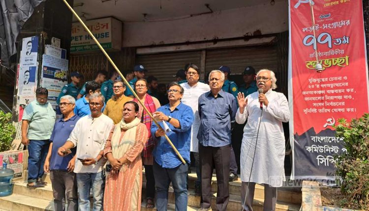 সকাল সাড়ে ১০টার দিকে সিপিবির কার্যালয়ের সামনে কালো পতাকা উত্তোলন করেন দলের সভাপতি মোহাম্মদ শাহ আলম।